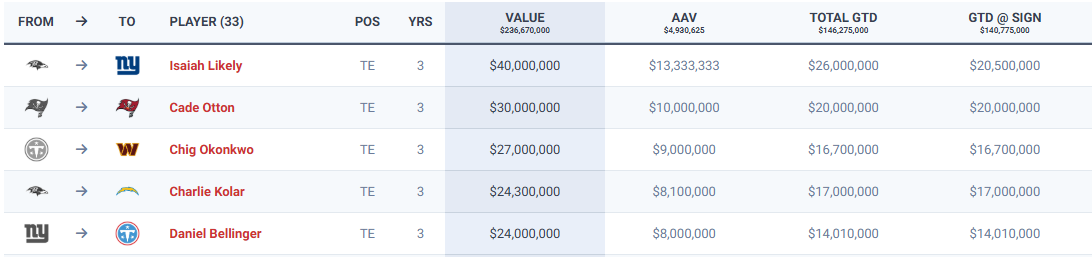 At only slightly more guaranteed money than Chig Okonkwo, Charlie Kolar, and Daniel Bellinger, I don’t think keeping Otton around procludes a Sadiq selection.